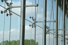 2- Liên kết chân nhện với hệ gia cố cũng bằng kính (chân nhện kẹp xương kính)