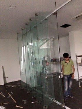 -Hệ thống 2 ray gồm ray trên và ray dưới, các cánh liên kết với nhau bằng hệ kẹp kính inox 304 giúp cửa kính đóng mở không bị vẫy cánh, chống lực xô ngang tốt nhất.